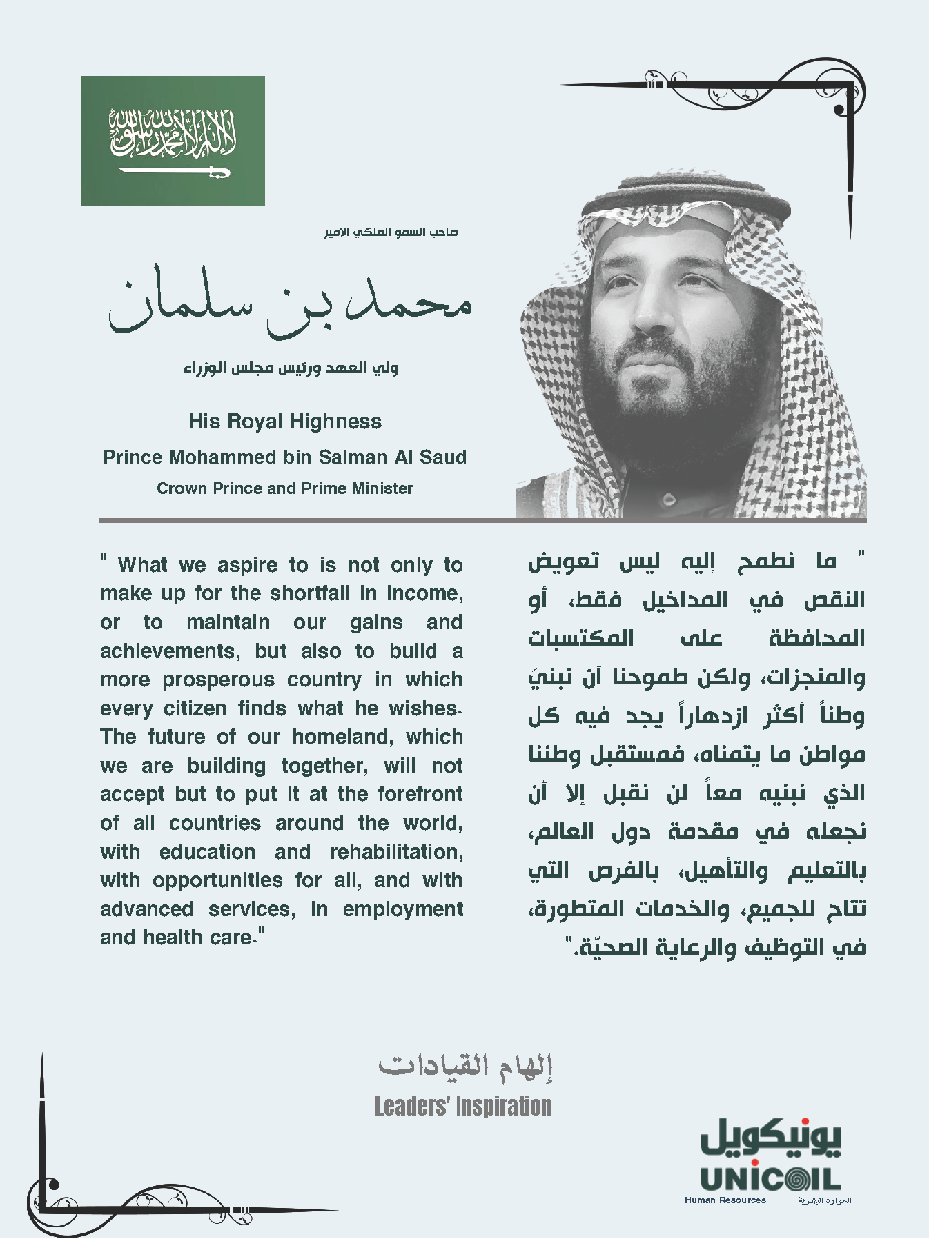 Главными украшениями административного здания UNICOIL являются фонтан и аквариум. Они сразу же привлекают внимание посетителей и гостей при входе в здание. Стены административного здания компании UNICOIL украшены постерами с изображениями птиц, обитающих в Саудовской Аравии. Они знакомят как проходящих мимо сотрудников, так и гостей с диковинками мира пернатых и прекрасной живой природой Саудовской Аравии.